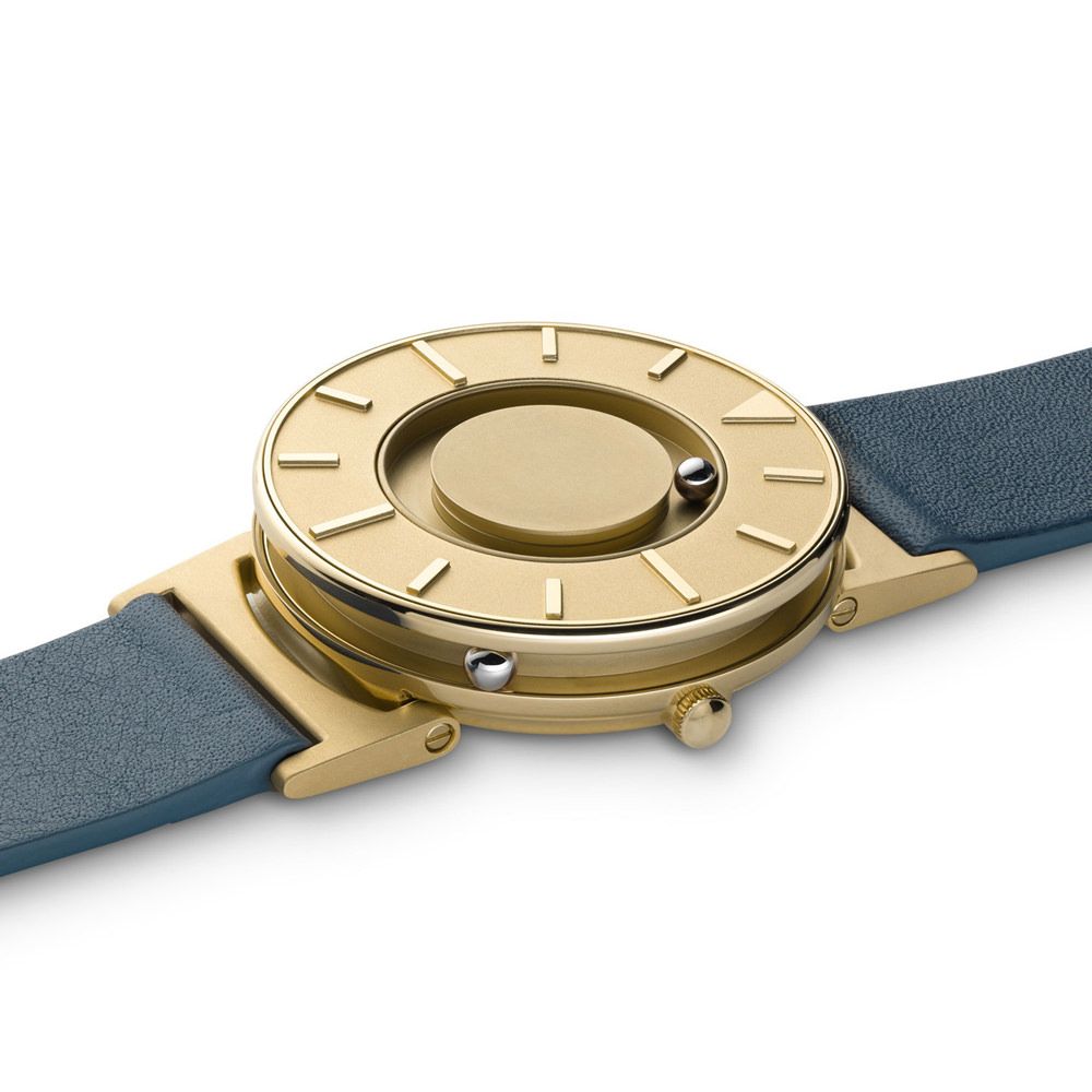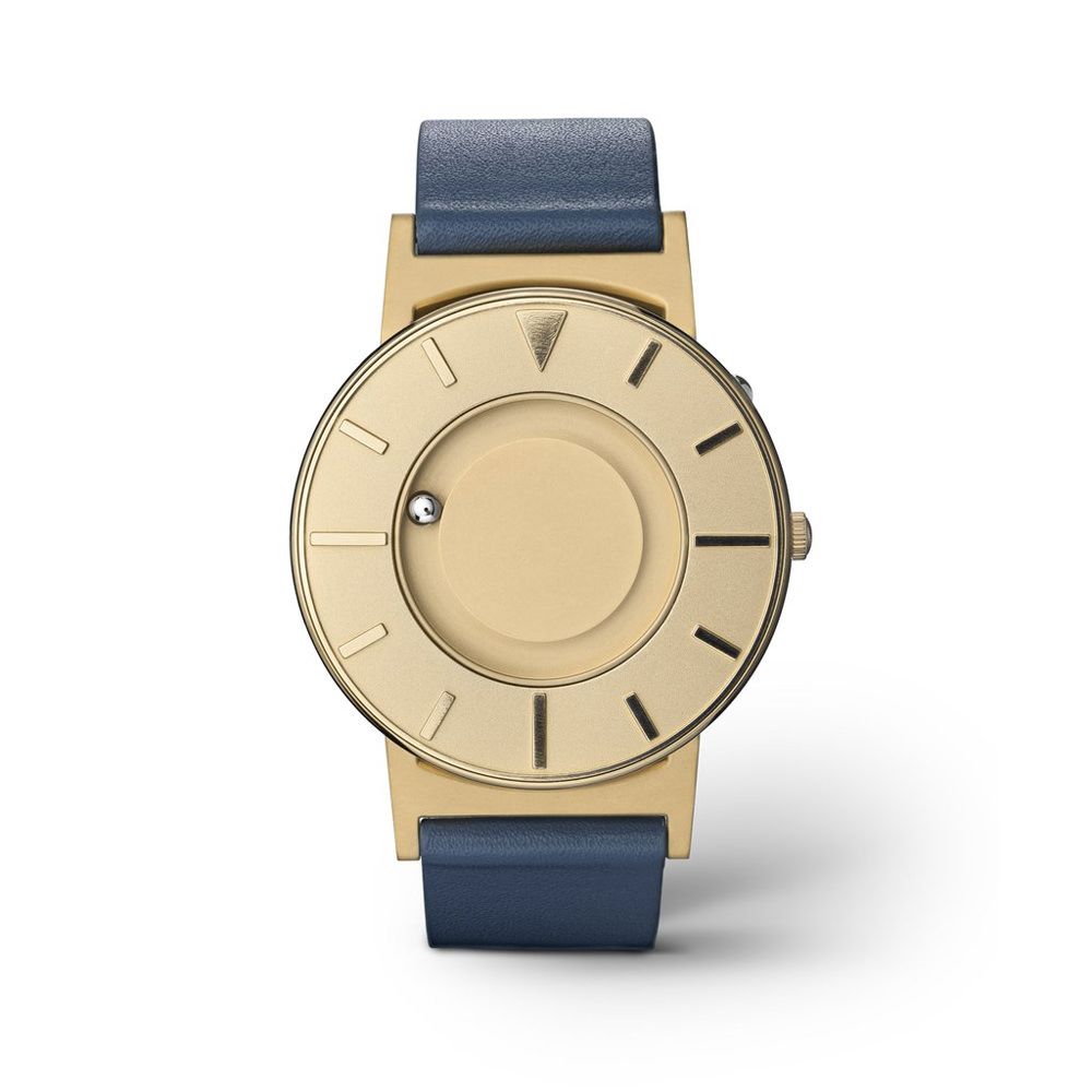 Tell time by touch with raised markers and two ball bearings that travel around the watch and face in separate, recessed tracks: one for the minute, and one for the hour.