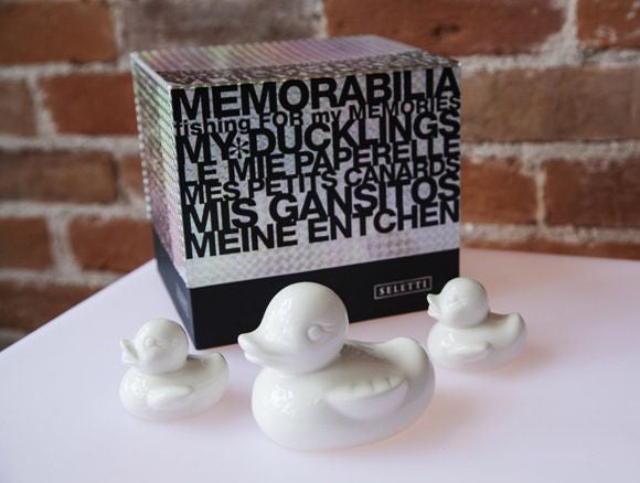 Designed by Selab + Alessandro Zambelli, the Memorabilia Collection keeps memories of the past alive by sharing iconic objects that are representative of past childhoods, cast in white and gold porcelain, and refashions them as elegant ornaments for the home.