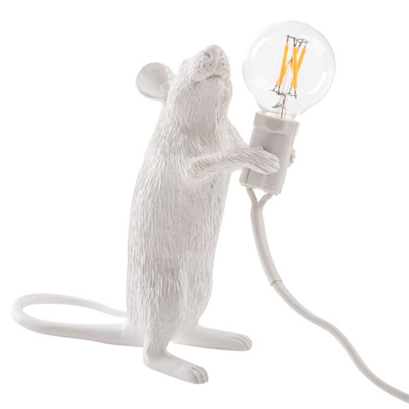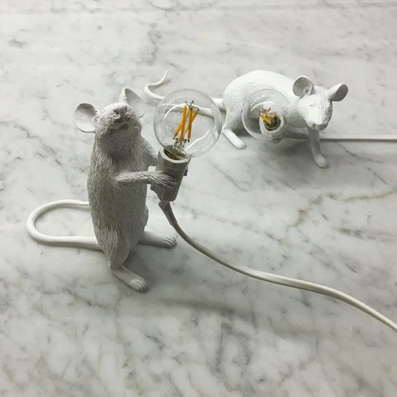 Designed by Marcantonio Raimondi Malerba, the Monkey, Mouse, & Elephant Lamps depict both the realistic and the magical. Made of resin and finished by hand, the Monkey and Mouse lamps share these creatures in three different positions, each exploring the environment while clutching an LED bulb, and are inspired by the relationships between man and nature. Comparatively, the Elephant lamp is a depiction of a fantastical scene inspired by animals in fairy tales where the characters play a magical yet fundamental role, and expresses the idea that anything is possible.